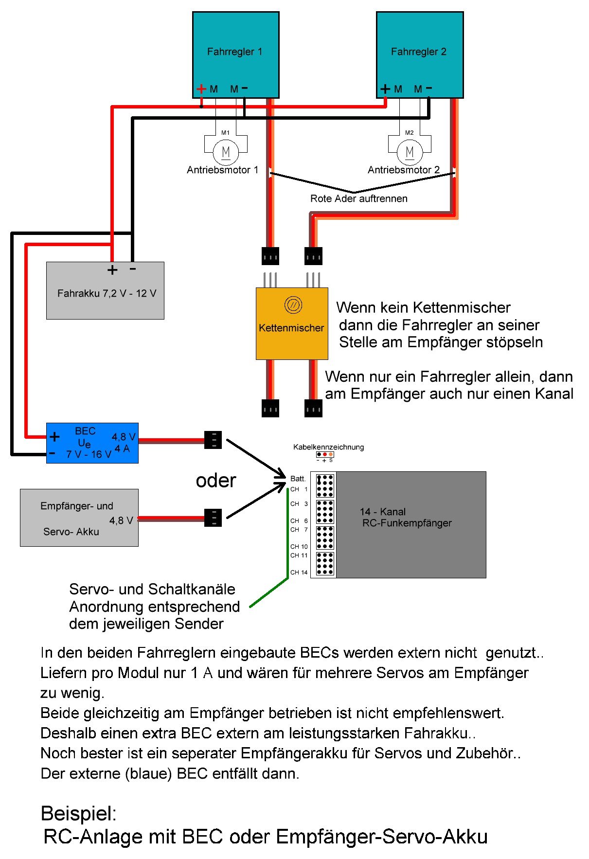 Leistung liefern. In diesem Fall die rote Ader NICHT auftrennen. Externer BEC oder der Empfänger-Servo-Akku entfallen dann.