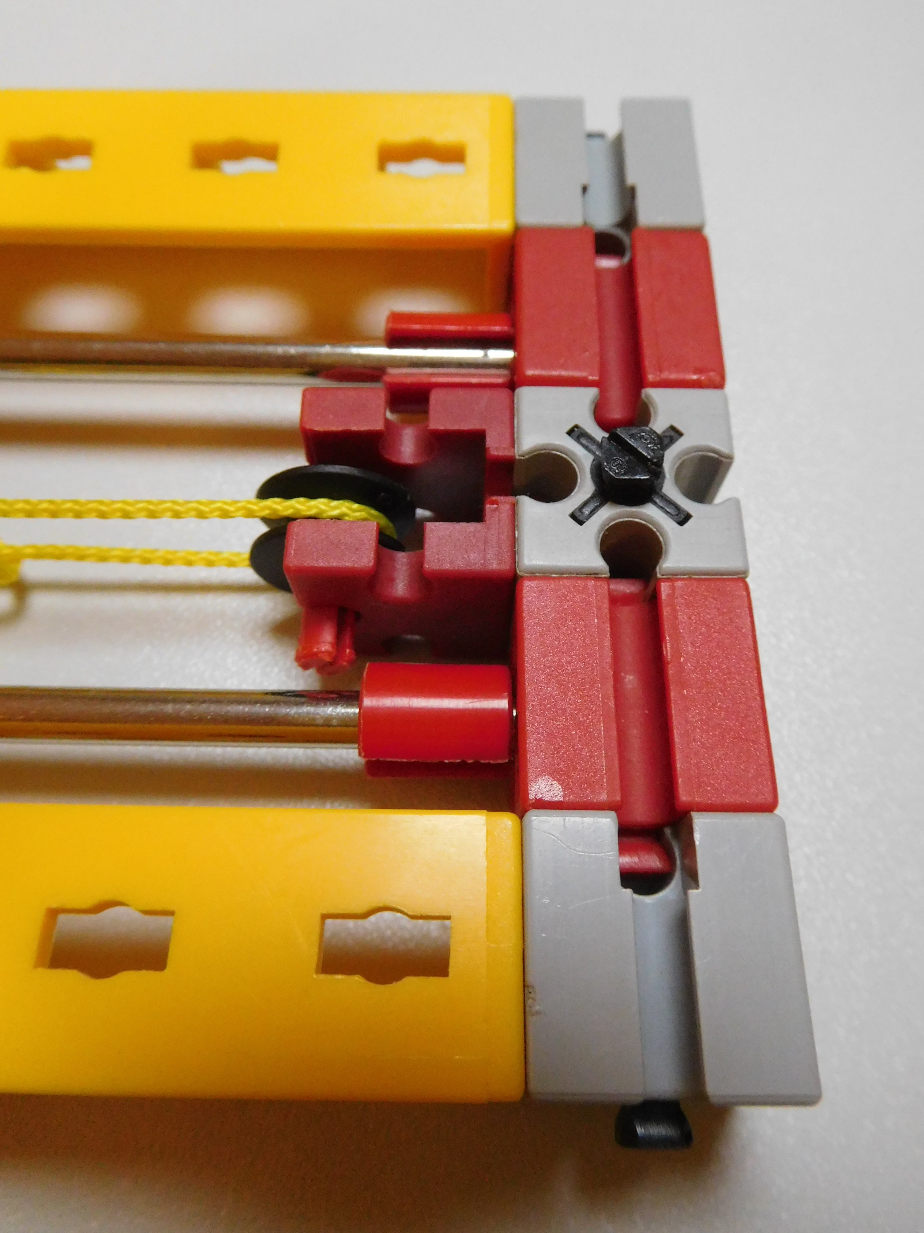 Eine Achse für die Umlenkrolle in den Seitenträgern kommt bei meinem Design mit den Führungsachsen in die Quere.