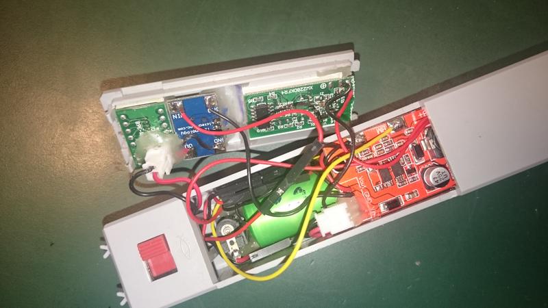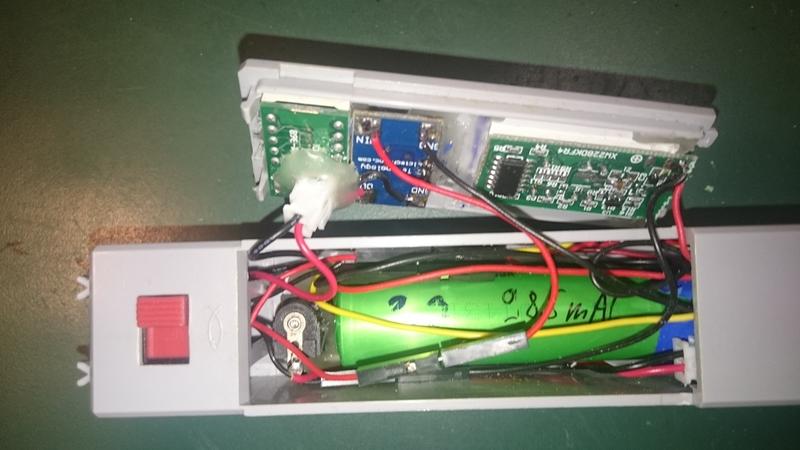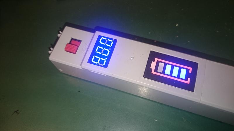 Die ist ziemlich ungenau und bricht bei Belastung der Spannungsquelle ein, als ungefährer Hinweis, wann der Saft zuende geht, reicht es aber und es sieht halt schick aus. Ich glaube, ich habe sie aus Platzgründen um ein paar überflüssige mm am Ende gekürzt.