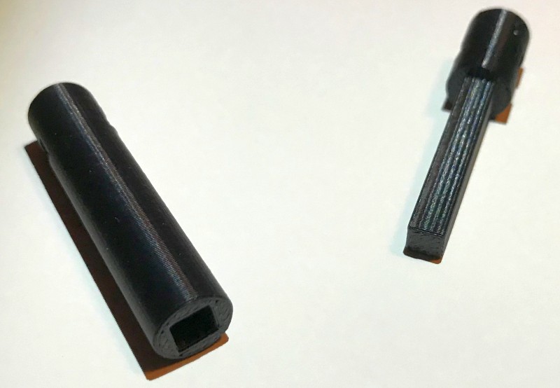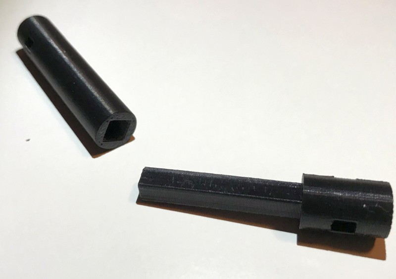 Rastachse 15 mm - Der kleine "Gürtel" verhindert das zu tiefe Einschieben, passt aber genau in die Abschrägung der komplementären ft-Teile. Um den Druck ohne Supports zu ermöglichen ist er nur auf drei Seiten ausgeführt.