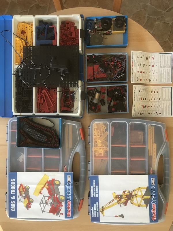 Fischertechnik-Baukästen , welche komplett sind an. Cars & Trucks, Baukräne, Power Motor-Set, Mini Motor-Set sowie die Funk-Fernbedienung inklusive Ladegerät. des weiteren einen Konvolut-Kasten in Fischer-Box als Ergänzung. Vielleicht hat jemand für das ganze Interesse.