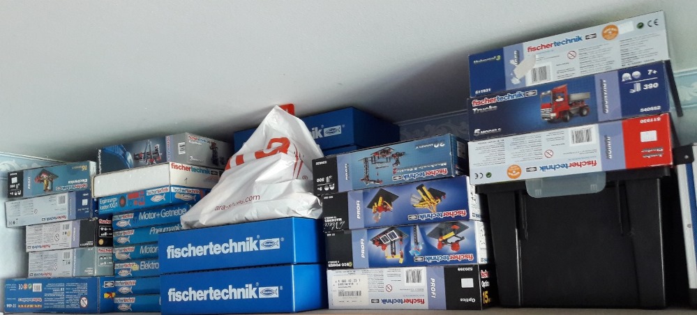 - Kästen ohne OVP sind nach Bauteile sortiert in insgesamt sieben Plus Boxen (30383) + großer Karton + zwei Baumarktsortierkästen für Kleinteile platzsparend verstaut.