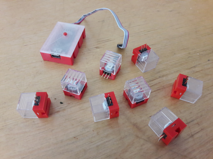 Ich habe von einigen meiner Projekte immer mal wieder Prototypen über. Einige habe ich auf der Maker-Faire an meine Mitstreiter verschenkt. Mit den "Profi Lights" (siehe viewtopic.php?f=8&t=4453) probier ich mal was neues.