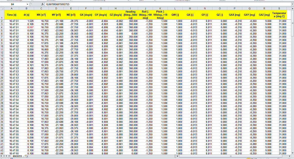 Die Daten werden gleich im Excel Format gespeichert. Die Daten sind für mich wichtig für die Auswertung, Steuerung und Regelung bzgl autonomes Fahren.