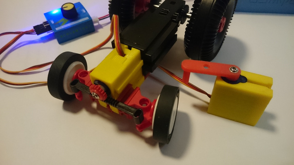 Um auch andere Projekte zu ermöglichen, habe ich zusätzlich Lenkhebel und ein paar Adapter für die gängigen Bauteilgruppen (Bausteine, Statikstreben, Rastachsen, Zahnrad Z10, Flachnabenzange) konstruiert.