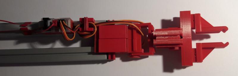 Was mir alternativ helfen würde wäre ein Greifer, wo das Servo nicht hinten sondern oben wäre und daher nicht zur Länge der Gesamtkonstruktion beiträgt.