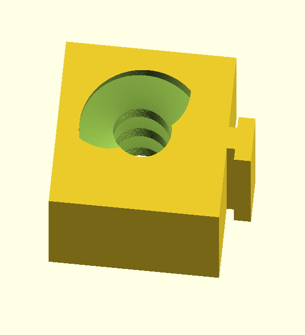 um das Hin- und Hergewackel zu verbessern, möchte ich eine eigene Schneckenmutter bauen, welche genau in die Nut des Makerbeam-Alus passt (der hat ja neben der tragenden Funktion auch eine Führungsfunkion für die Schneckenmuttern):