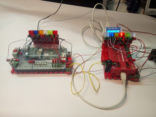 Das Modul läuft bisher über die Start IDE, die wiederum auf einem Raspberry-Pi B läuft. Das Modul 3 (TX-Controller) steuert hier nur für einige Sekunden jeweils 2 Motoren abwechselnd an (Da ist aber noch mehr in Planung)