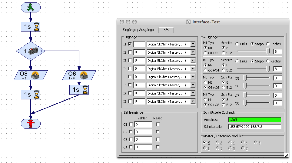 Das habe ich gerne getan. Ich habe auch dieses Programm siehe Bild zum Testen geschrieben. Aber ob das Interface I1 0 oder 1 ist, beides mal läuft es bei 0 ab.