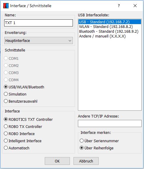 4. Danach die Schnittstelle einstellen auf Robo TX-Controller