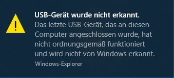 Nach Reset kommt FTDuino wird eingerichtet danach wieder die Fehlermeldung : USB Gerät nicht erkannt.