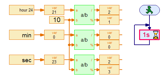 ich benötige für den Bau einer Elektromechanischen Uhr die Minuten bzw. Stunden zerlegt in jeweils 2 Variablen.