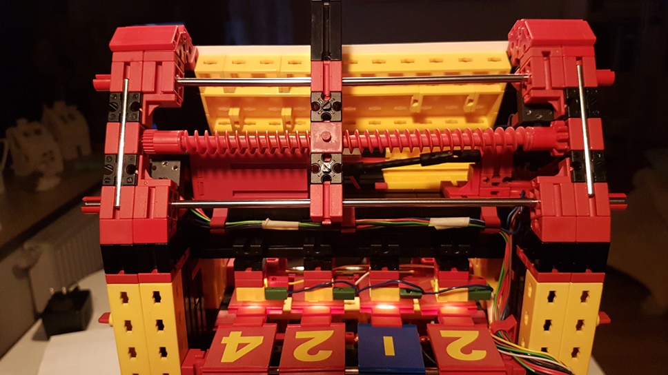 2. Maschine fährt auf den vier "Paternostern" die jeweilige Uhrzeit an (Positionsbestimmung über Fototransistoren)