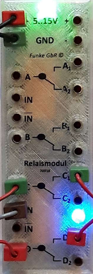 Relaismodul (2 Relais mit jeweils 2 gekoppelten Umschaltern = 2 * Relaisbaustein; schaltbar mit + oder -)